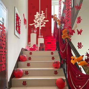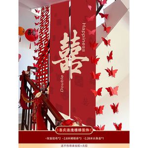 楼梯装饰结婚扶手长条喜字贴拉花婚房布置套装男女方婚庆用品大全