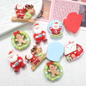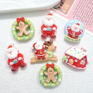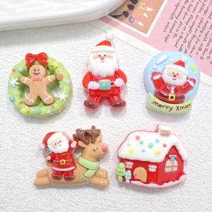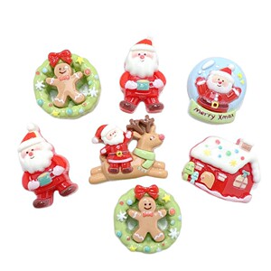 新款卡通圣诞主题树脂配件diy奶油胶发夹吊坠钥匙扣挂坠自制材料