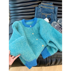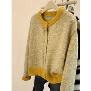 小香风黄色短款毛衣外套女装秋冬季慵懒风小个子针织开衫百搭上衣