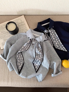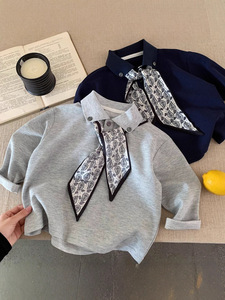 儿童polo衫2025秋季新款童装男童女童丝巾个性polo衫宝宝洋气上衣
