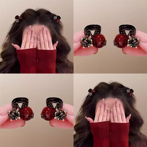 红色水钻珠珠抓夹女2025新款小号刘海夹前额碎发边顶夹发夹子头饰
