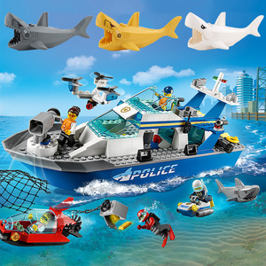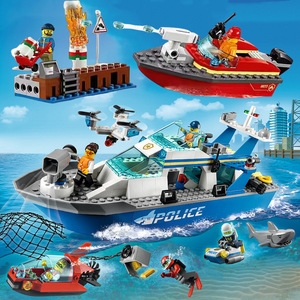 生日海洋系列积木警察轮船模型潜水艇拼搭玩具男孩子