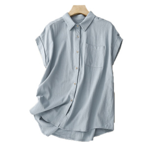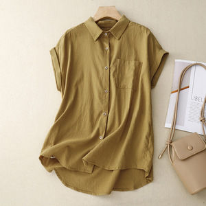 实拍通勤纯色短袖衬衫夏季新款女设计感小众休闲衬衣女小个子上衣