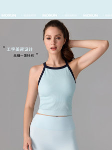 无缝工字运动背心带胸垫外穿健身瑜伽服文胸防震跑步普拉提内衣女
