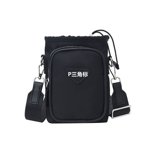 P家大牌复刻抽绳开合轻便大方外贸尼龙单肩斜跨包一件代发跨境爆