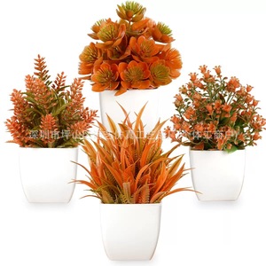 秋季新款仿真绿植 秋色盆栽尤加利塑料人造花小盆景室内装饰摆件