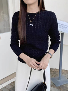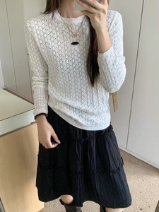 高定小香风洋气长袖打底衫25年早秋新款镂空高级感套头针织衫女