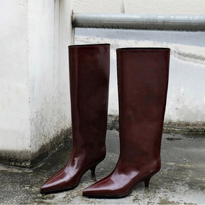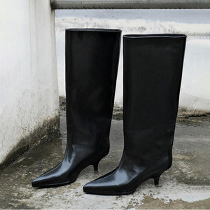 欧美风大简极简风长靴女2025ins风尖头复古骑士靴细跟瘦瘦靴INS潮