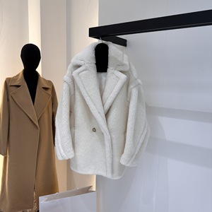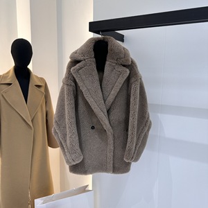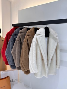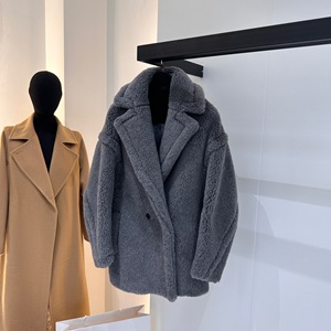M家秋冬新款经典泰迪熊加厚颗粒羊毛大衣女Teddy皮草短款外套批发