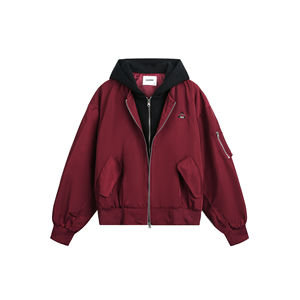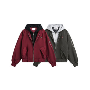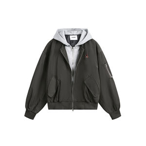 2025新款假两件撞色拼接连帽飞行员夹克男秋季新款短款设计感外套