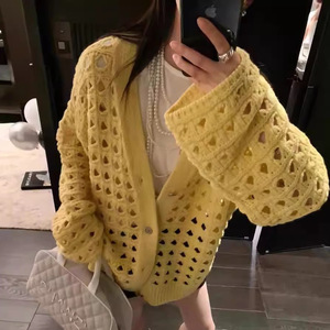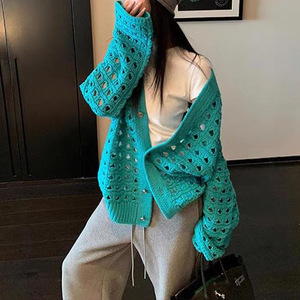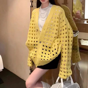 镂空钩花慵懒风针织开衫女2025春夏新款宽松中长款减龄外套