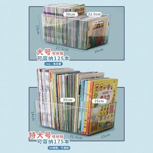 绘本收纳盒透明书本收纳箱儿童书架桌面整理装书籍柜书箱置物筐