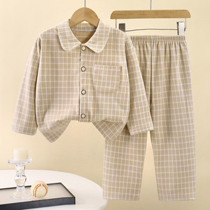新款童装家居服套装儿童方格子暖绒翻领家居服男童睡衣宝宝居家服