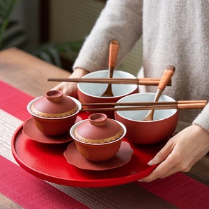 宫廷喜碗一对+木筷勺+花边盘【简装】