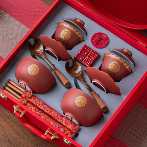 宫廷喜碗一对+木筷勺+盘礼盒装