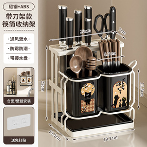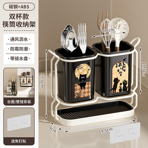 轻奢中古风家用壁挂筷子架厨房台面沥水简约筷子筒餐具收纳置物架