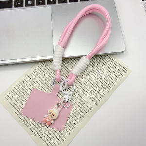 【粉白挂绳】粉白龇牙卡通+粉色垫片