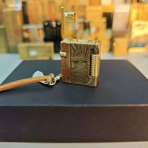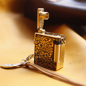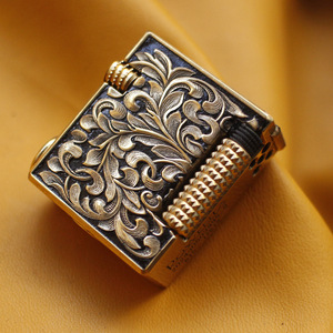 跨境爆款抖音镶嵌唐草煤油纯铜打火机高档抬臂砂轮火机送男友礼物