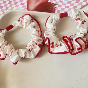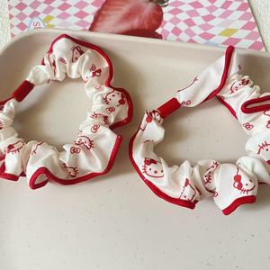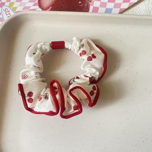 正红色系波点花边小肠发圈气质甜美樱桃KT印花头绳丸子头发绳女