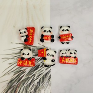 新款亮面卡通国庆熊猫字牌树脂配件diy手机壳钥匙扣发饰贴片