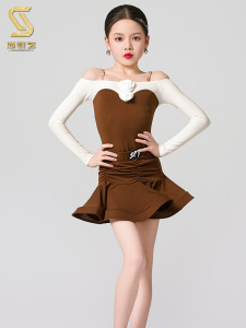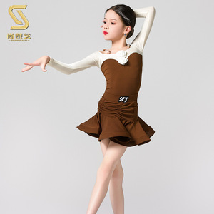 尚裁艺2025新款拉丁舞服女儿童拼接色练功服高级感大摆裙洋气套装