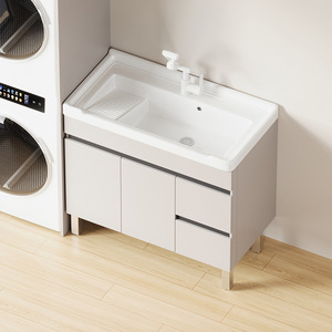 奶咖90cm右小门 洗衣机盆 单主柜