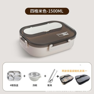 (白色)4格+汤碗+餐具+保温袋