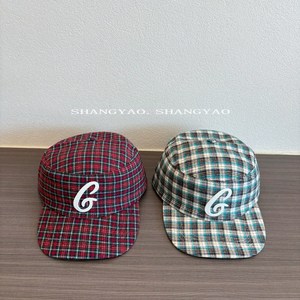 亲子帽韩系格子刺绣字母棒球帽嘻哈帽平檐平顶街头鸭舌帽儿童帽子