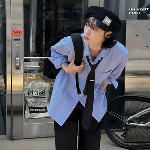 MYQ简约风纯色长袖衬衫男士春秋季宽松休闲衬衣韩系高级感穿搭