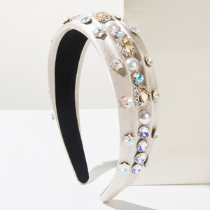 韩版新款气质高级感珍珠水钻水晶宽边发箍女百搭甜美轻奢压发发饰