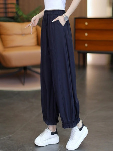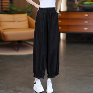 木耳边休闲裤女夏季薄款高腰显瘦灯笼裤运动百搭抽绳直筒九分裤