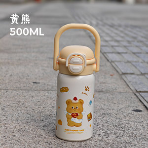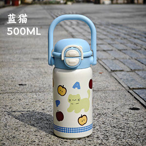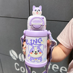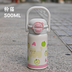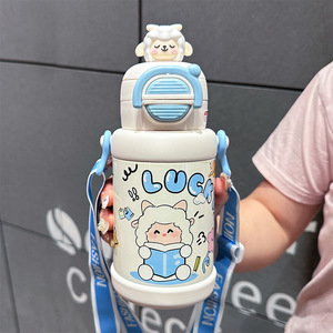 高颜值卡通儿童保温杯316不锈钢吸管杯学生上学斜跨双饮弹跳杯子
