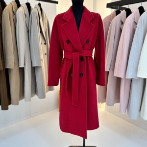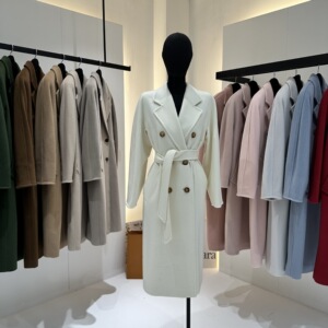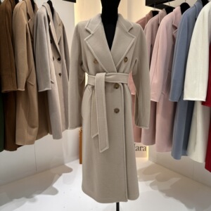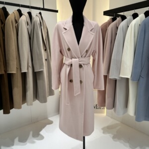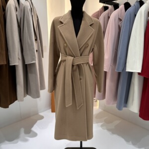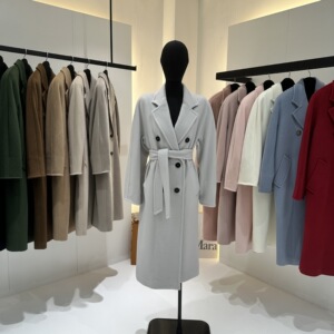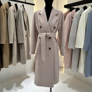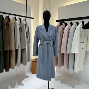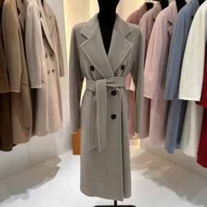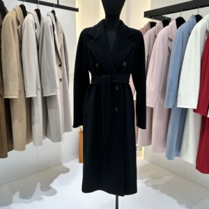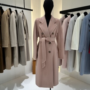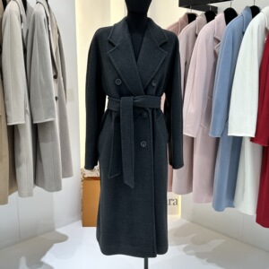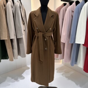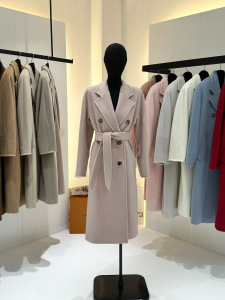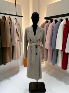 M家经典101801长款羊毛大衣女 秋冬双排扣小阔型系带羊毛呢子外套