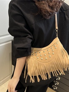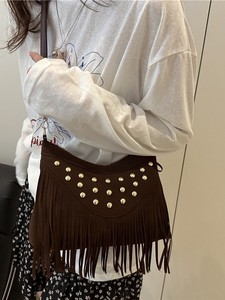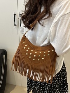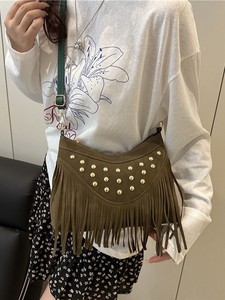 2025复古休闲百搭时尚大容量铆钉潮流草原蒙古牛仔单肩斜挎女包包