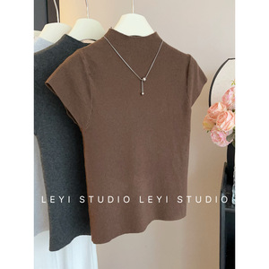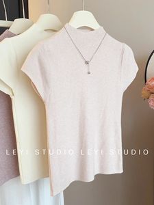 9个颜色 纯欲风修身小飞袖半高领针织衫夏季气质显瘦简约打底上衣