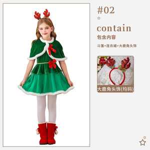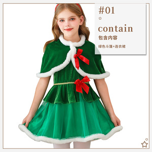 圣诞节服装儿童斗篷披肩圣诞老人圣诞派对礼服裙圣诞树女童连衣裙