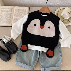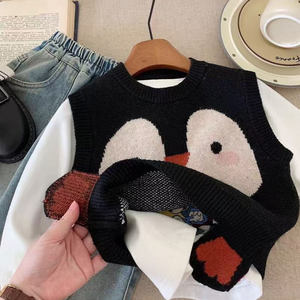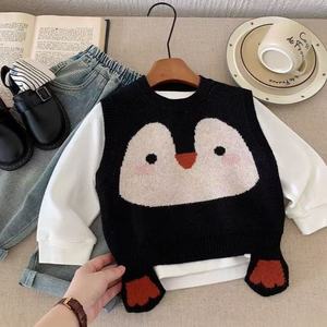 儿童可爱毛衣针织马甲女宝秋季韩版百搭圆领无袖外穿坎肩男宝背心