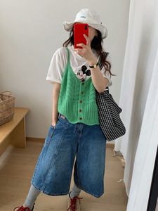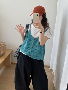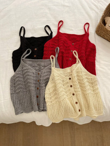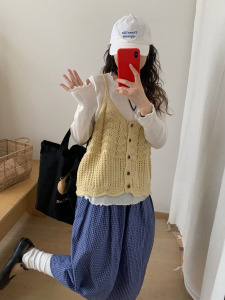 木四 镂空针织叠穿吊带背心女羊毛学院风小个子百搭马甲开衫M6484