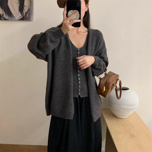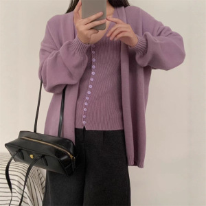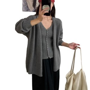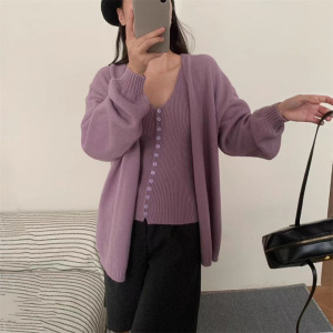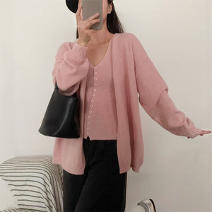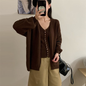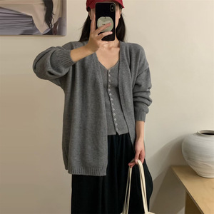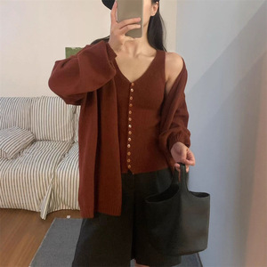 套装女港风复古麻花针织背心开衫上衣女秋冬新款宽松慵懒风两件套