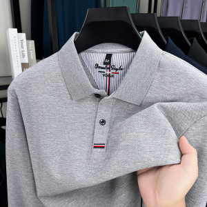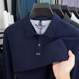 100%纯棉翻领poloT恤跨境休闲男装宽松打底体恤衫上衣男装长袖男t