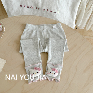 奶油打底裤2025秋季新款拼接裤子甜美韩系百搭蝴蝶结宝宝打底裤子