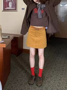 复古感姜黄灯芯绒半身裙2025秋季通勤百搭短裙中长裙