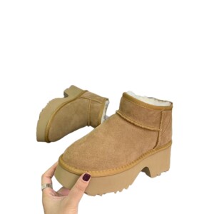桑坡PRUGGI高跟雪地靴女鞋冬季新款人鱼短靴牛皮羊毛厚底保暖棉鞋