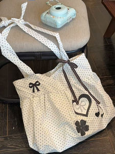 2025新款复古波点印花帆布包可爱蝴蝶结爱心音符韩系休闲单肩包潮