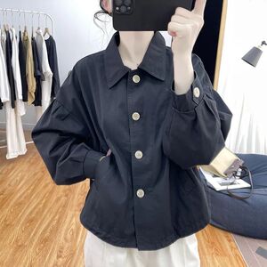 春秋季短款港风polo领衬衫外套女宽松减龄上衣新款复古显瘦夹克女