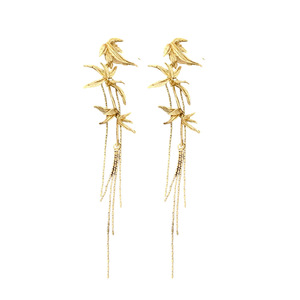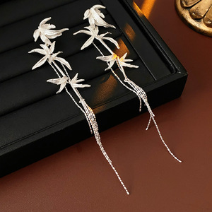 银针新中式竹叶流苏耳环女小众独特设计感耳钉气质百搭冷淡风耳饰