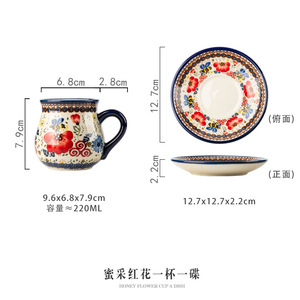 波兰咖啡杯碟套装家用高颜值下午茶茶具复古杯子女水杯陶瓷马克杯