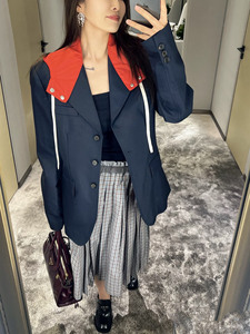 2025年夏季新款Miu南油工厂休闲原宿风撞色拼接连帽长袖夹克外套