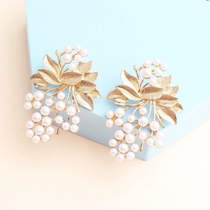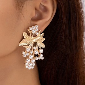 新款亚马逊跨境甜美小清新气质合金耳环 简约树叶镶珍珠耳坠
