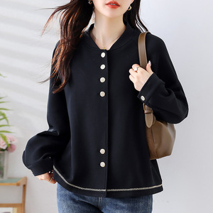 实拍黑色棒球服外套女秋短款新款宽松大码女装上衣